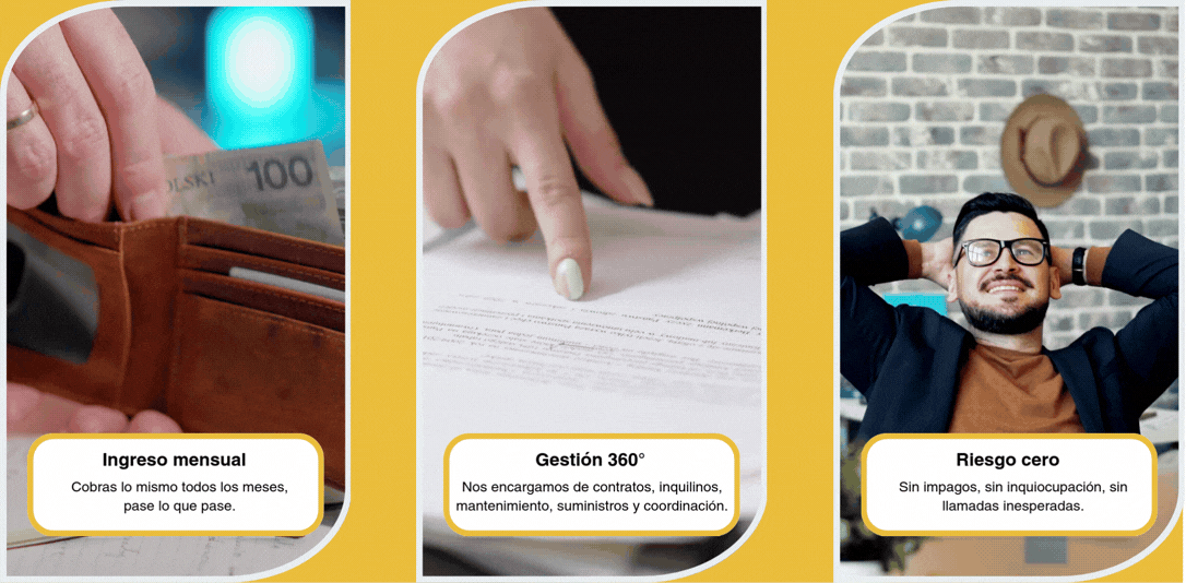 Trabajamos con propietarios que buscan ingresos mensuales estables sin tener que ocuparse de la gestión diaria, así como con inmobiliarias que desean ofrecer a sus clientes una solución profesional y rentable.